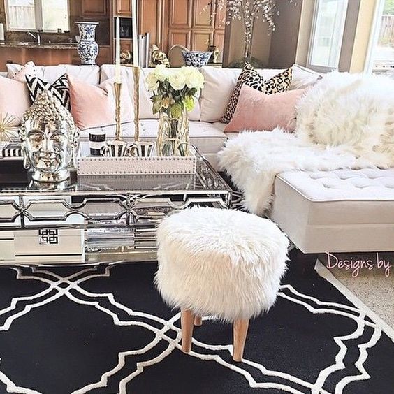 Here's a room that doesn't particularly ring my chimes because it has too much glitz and materialism. It reminds me of a woman who has on too much makeup and bling, but there are lots of people who love a glam look. I'm not judging, just saying it's not for me.